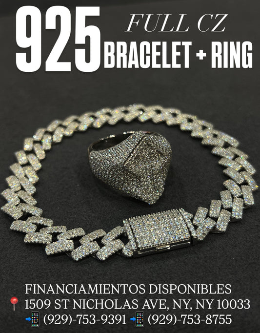 925 SOLID CUBAN BRACELET AND RING FULL CZ