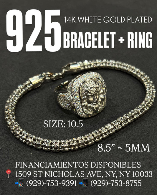 925 SILVER BRACELET AND CROSS RING FULL CZ